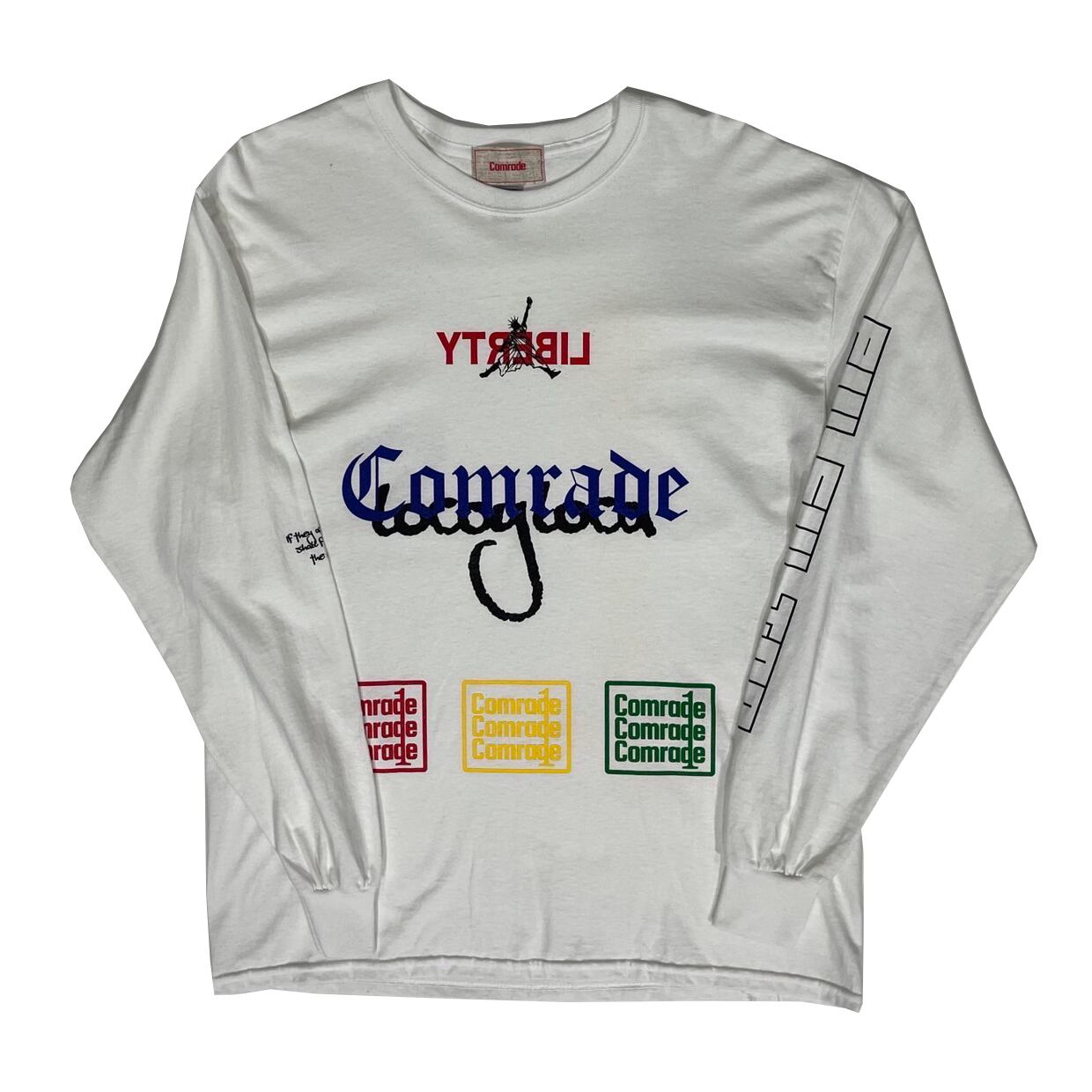 us100%cottonのザラついた質感で、洗えば洗うほどそのザラつきは増し、スタイリングに風合いを演出してくれます。グラフィックはcomradeのstoryを詰め込みました。